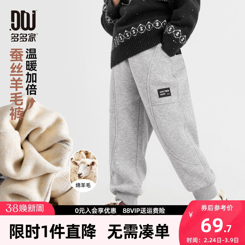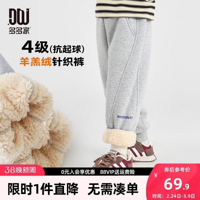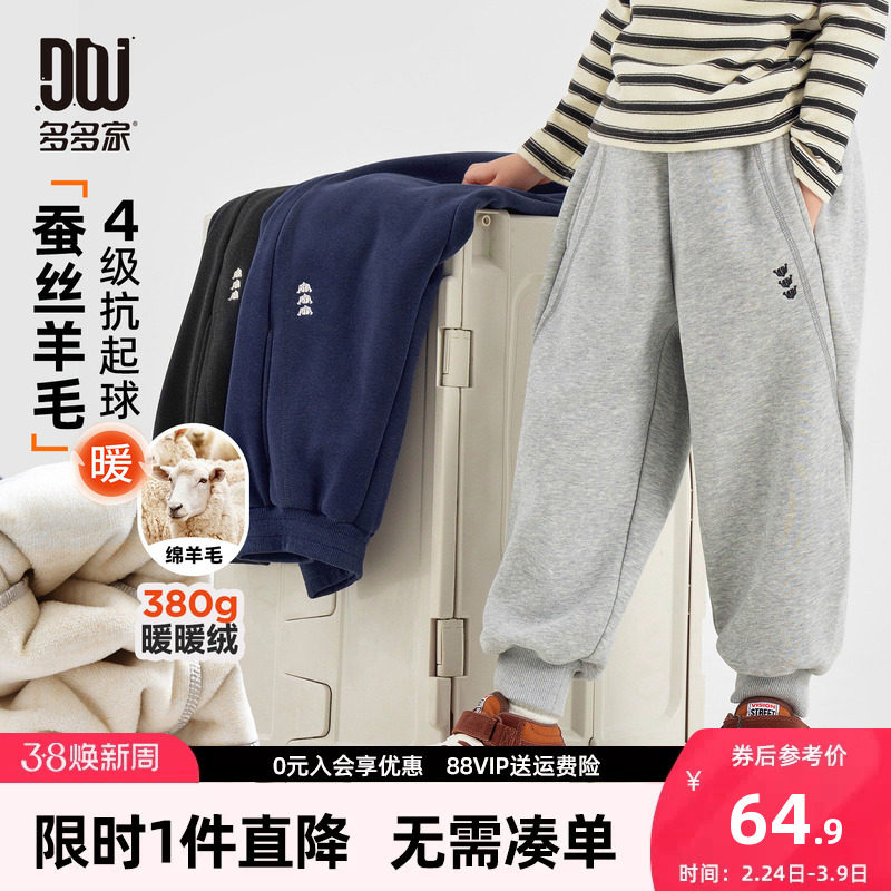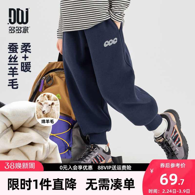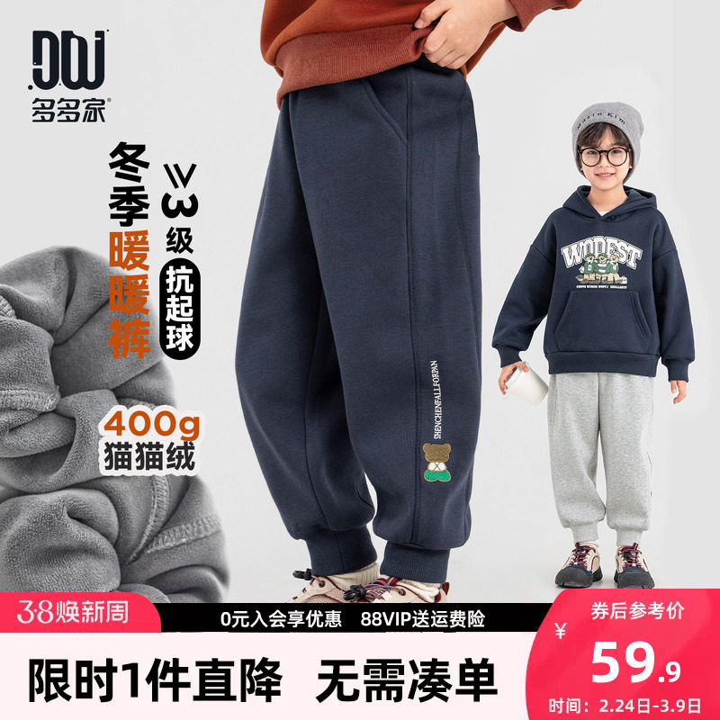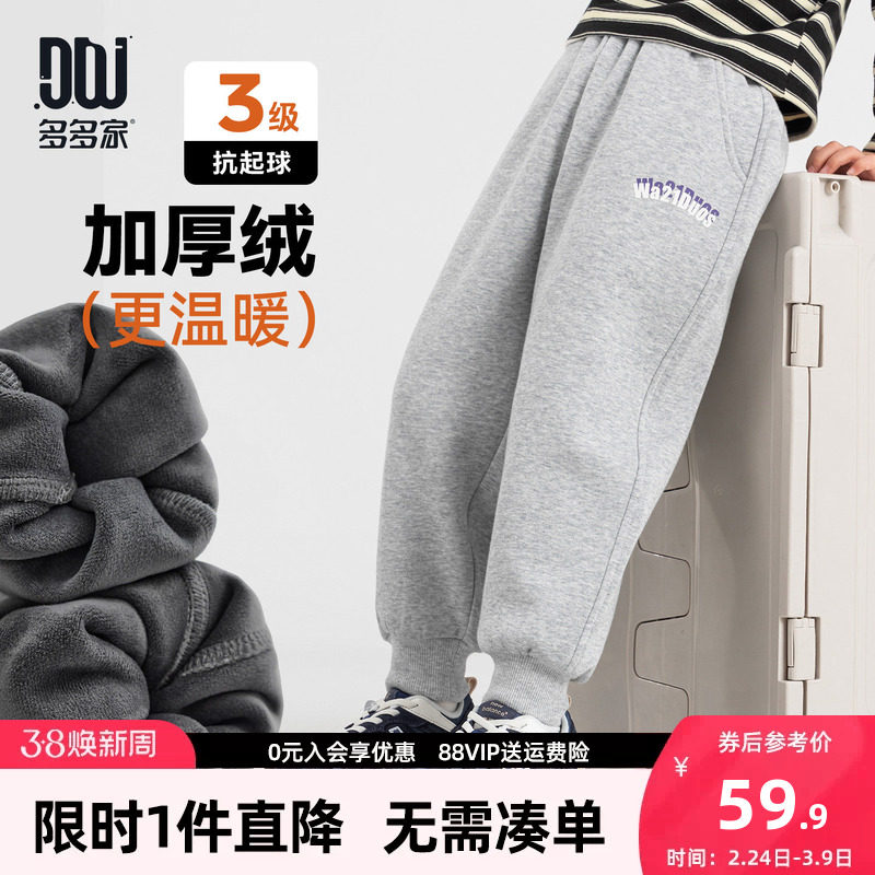 多多家男童加绒运动裤卫裤秋冬2025新款儿童加厚保暖一体绒裤子潮