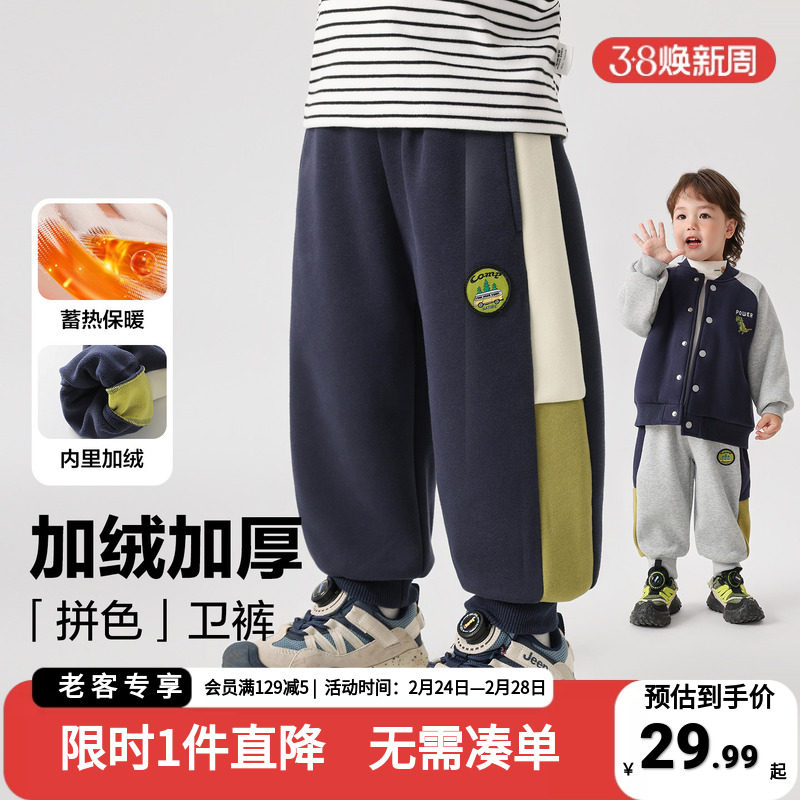 [VIP]MQD男童加绒运动裤2025冬季新款儿童加厚保暖拼接束脚休闲裤