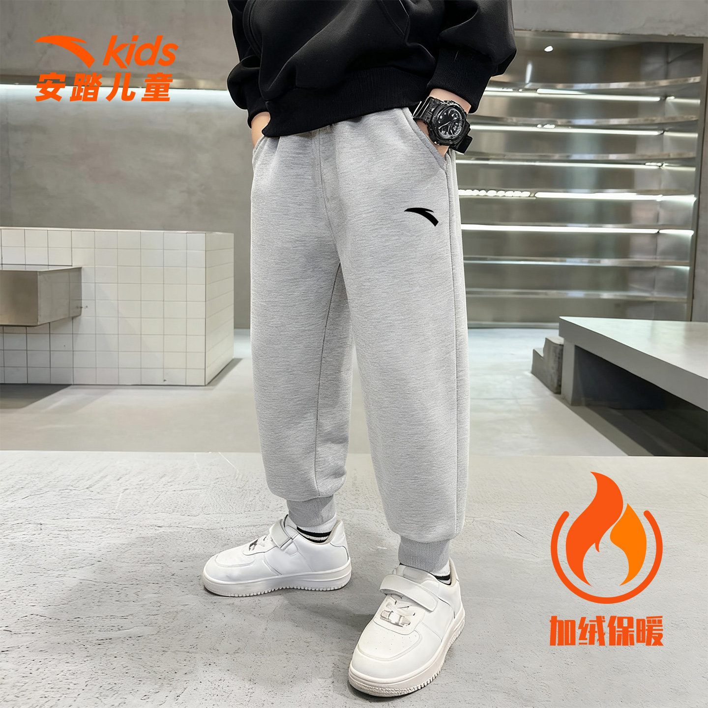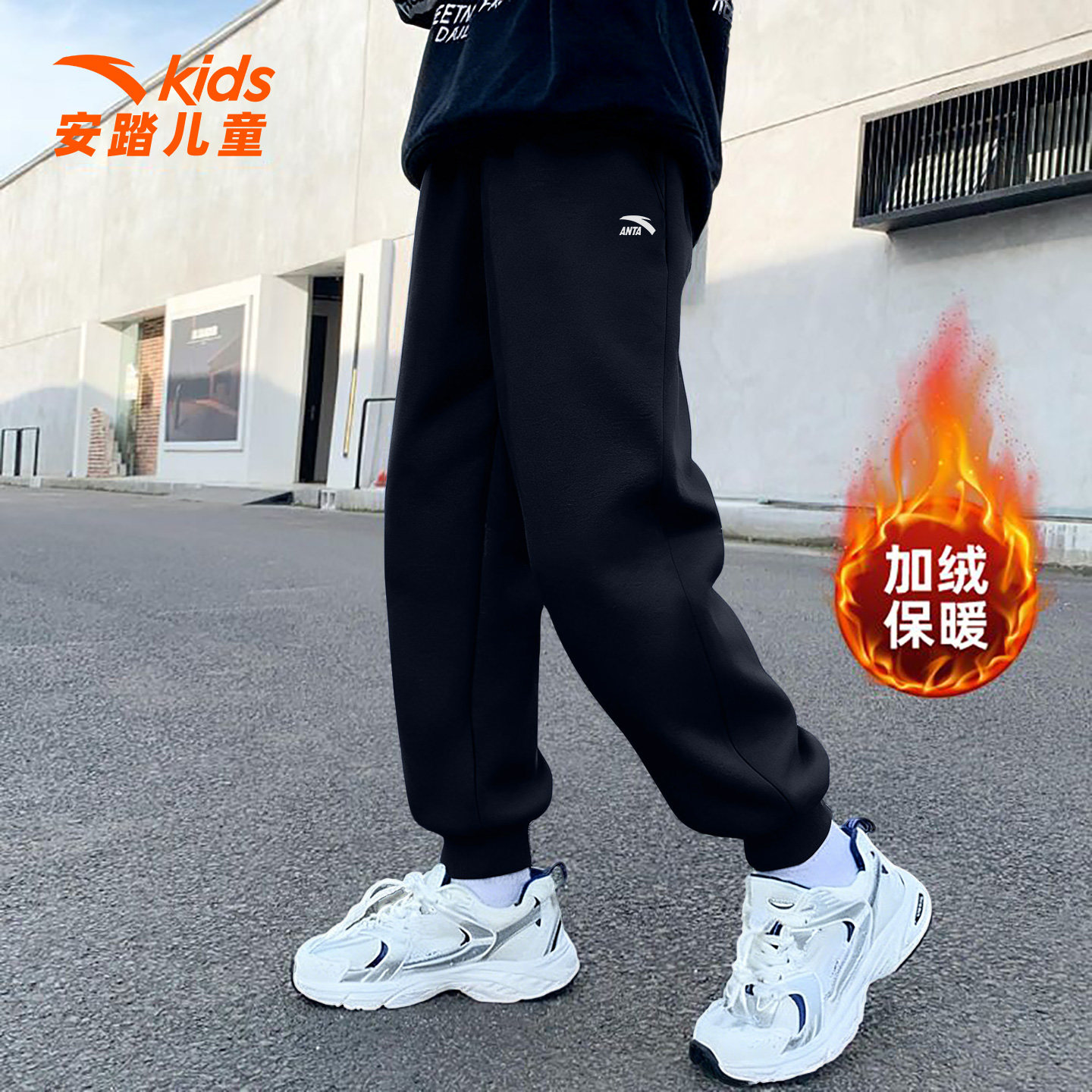 安踏童装男童加绒运动裤2025秋冬季新款儿童加厚棉裤舒适保暖卫裤