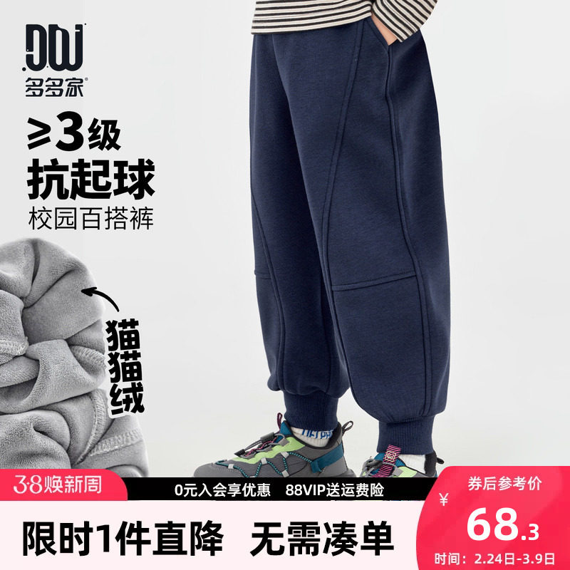 多多家男童加绒运动裤儿童卫裤2025秋冬季新款中大童加厚裤子冬装