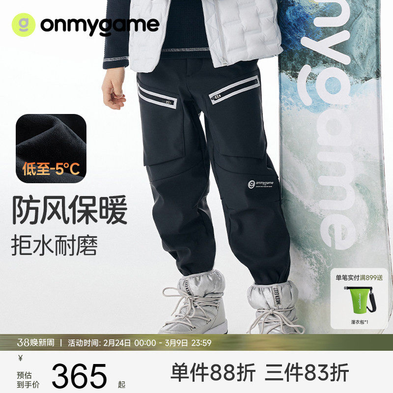 onmygame男童加绒运动裤秋冬装儿童户外三防耐磨长裤加厚保暖裤子