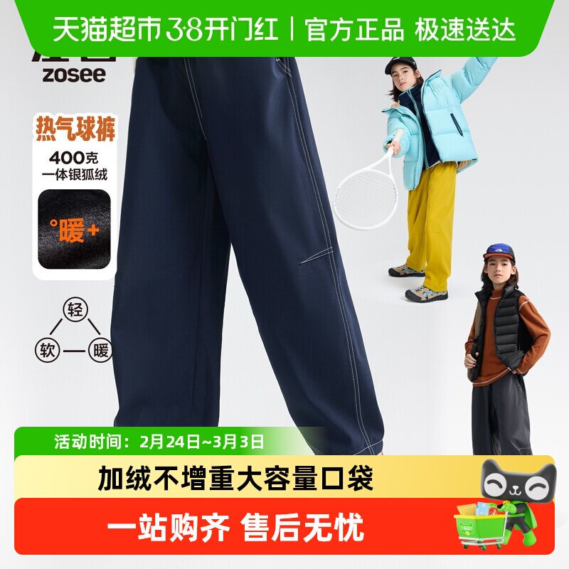 左西童装男童加绒运动裤冬季保暖裤子2025新款儿童冬装洋气长裤潮