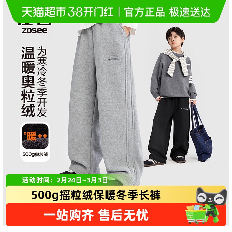 左西童装男童加绒运动裤秋冬款儿童保暖卫裤2026新款中大童裤子潮