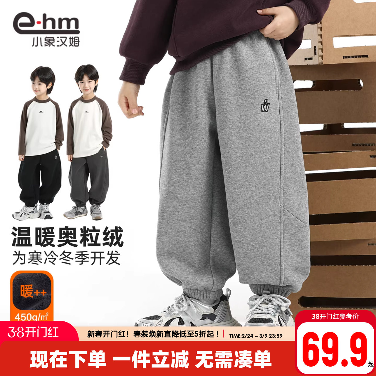 小象汉姆童装男童加绒运动裤儿童冬装保暖裤子2026新款男孩长裤潮