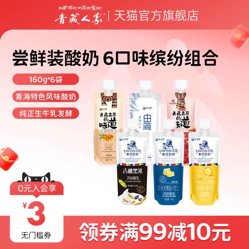 青藏人家 青海慕拉常温酸奶6种口味全家福尝鲜组合 160g*6袋