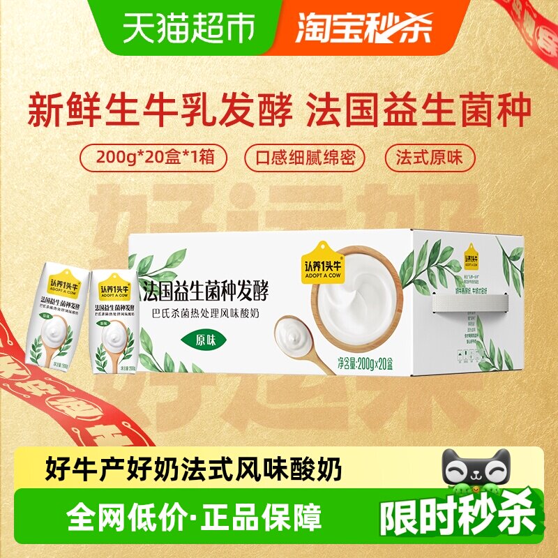 新年礼盒认养一头牛原味常温酸奶200g*12盒年货送礼11月
