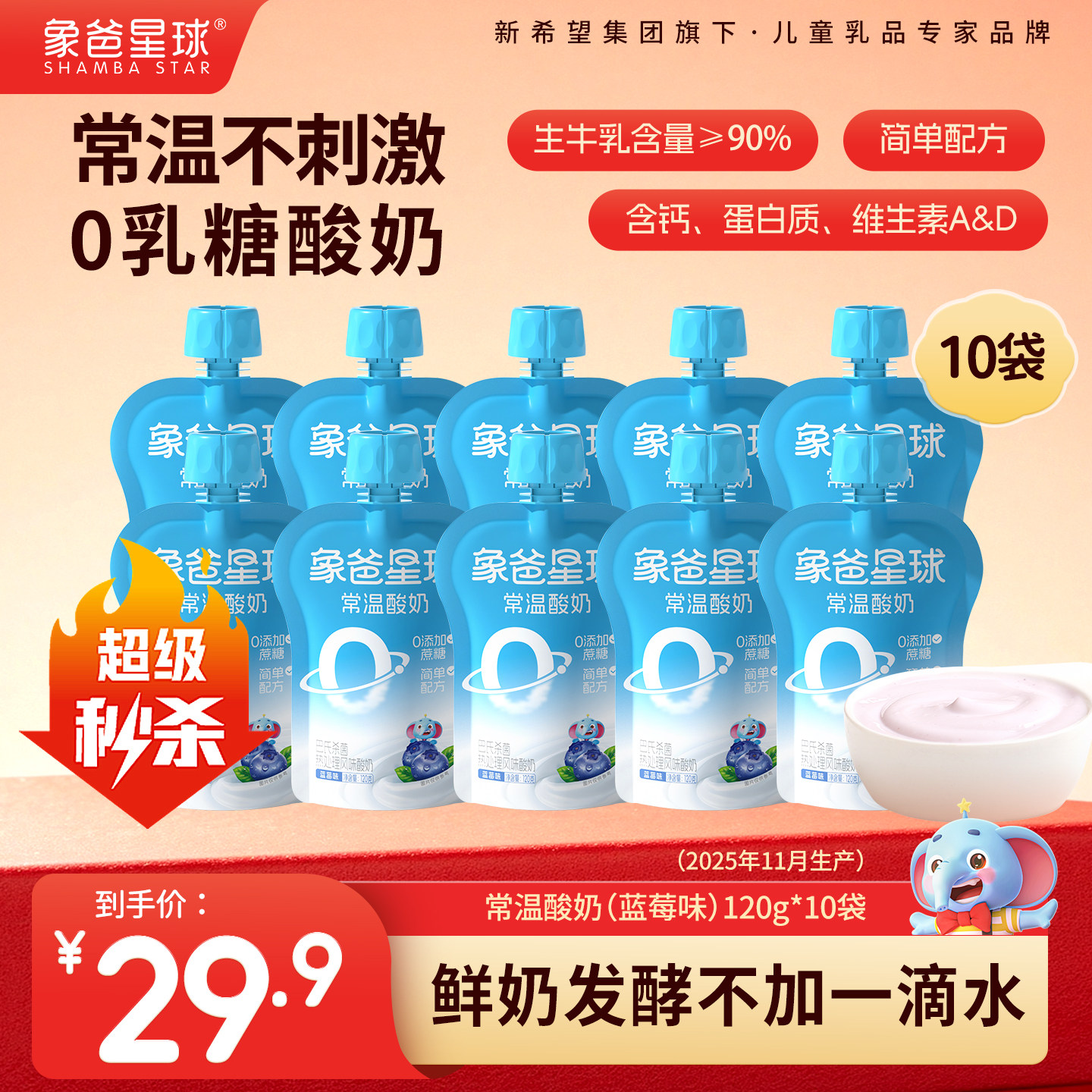 【超值特惠】象爸星球儿童0添蔗糖常温酸奶蓝莓味10袋营养早餐
