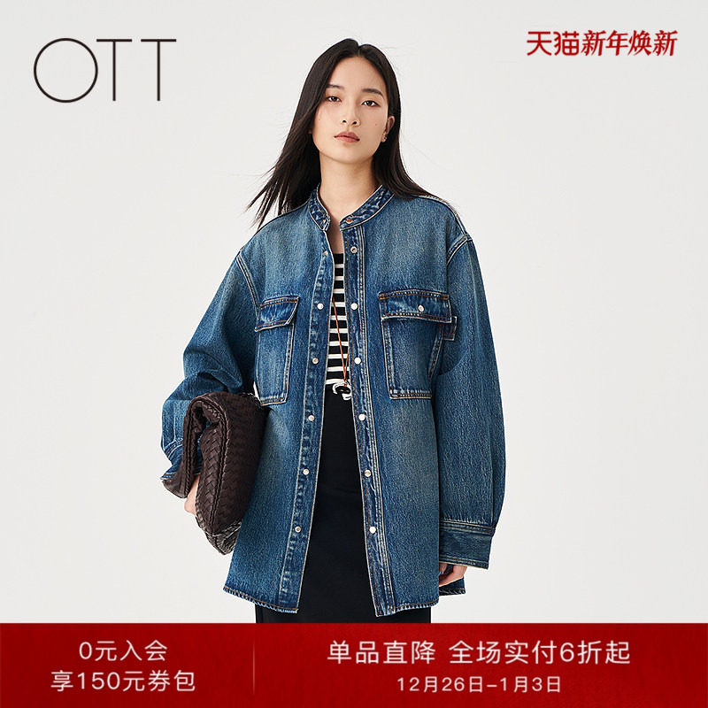 TurnSignal时尚牛仔外套女中长款秋季2025新款立领休闲宽松复古