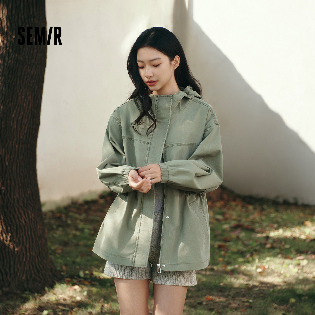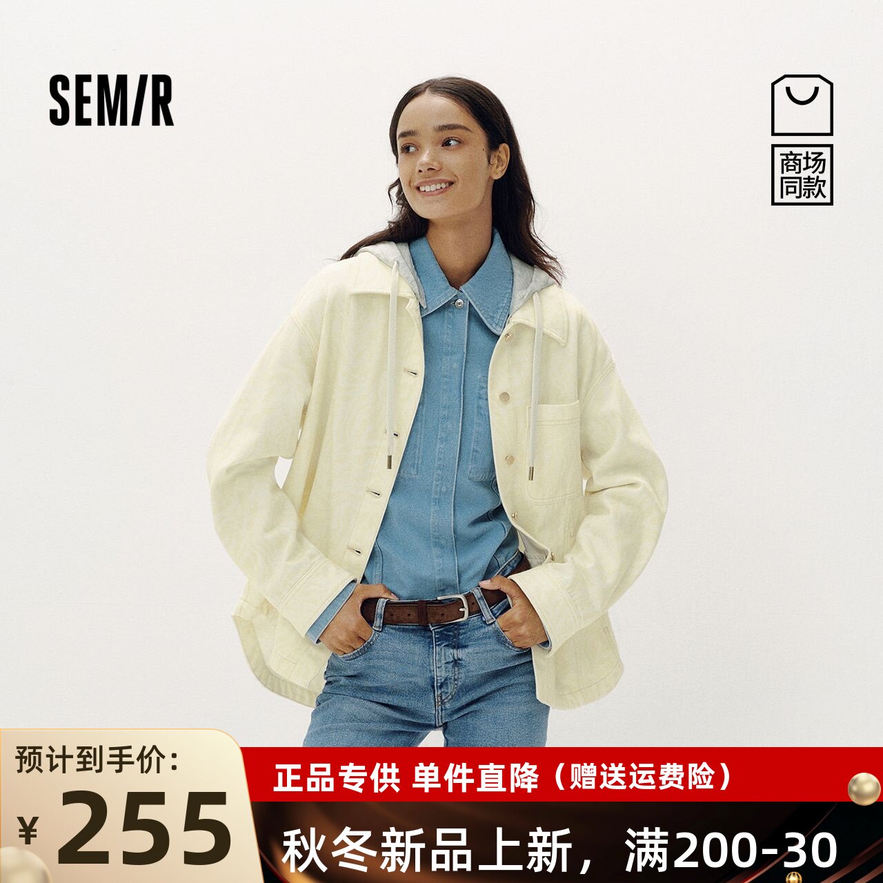 [商场同款]森马牛仔外套女中长款宽松连帽2025春新款收腰夹克复古