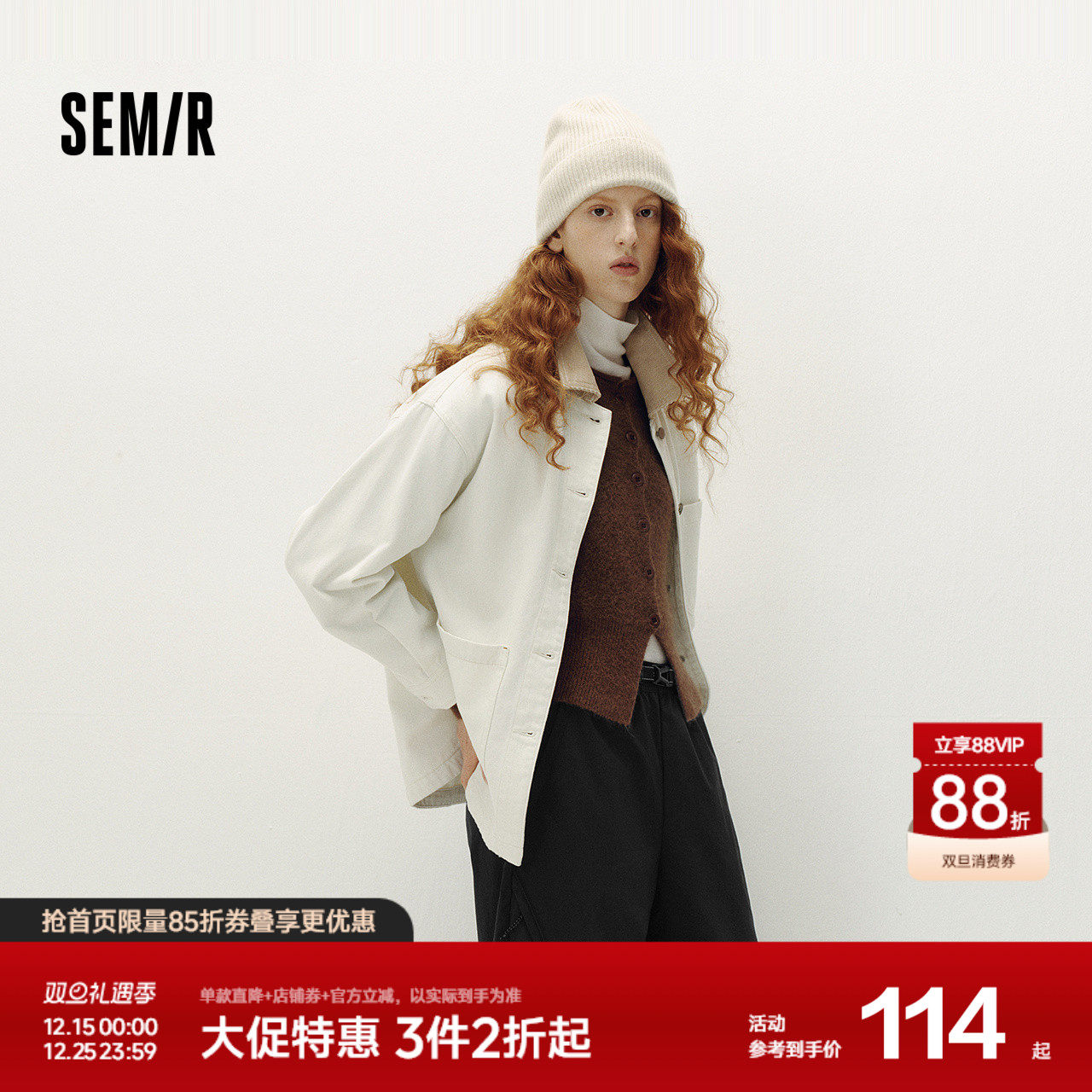 森柔牛仔|森马牛仔外套女中长款灯芯绒翻领秋季落肩宽松上衣时尚