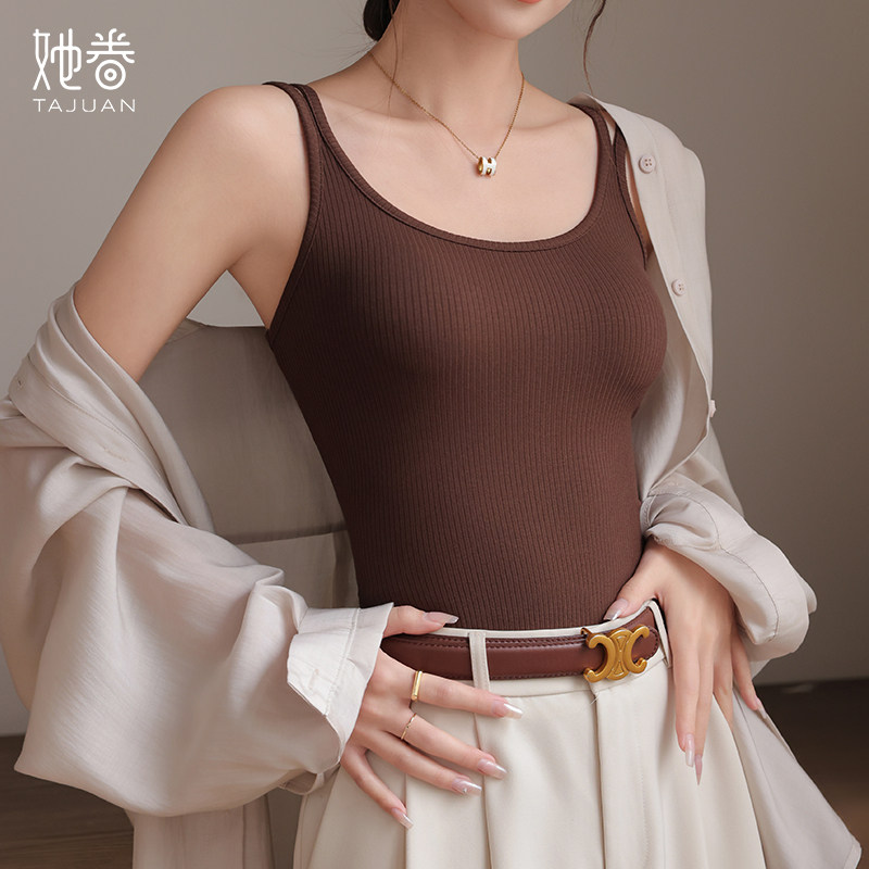螺纹莫代尔吊带背心女夏无袖内搭打底衫防走光遮副乳针织上衣外穿