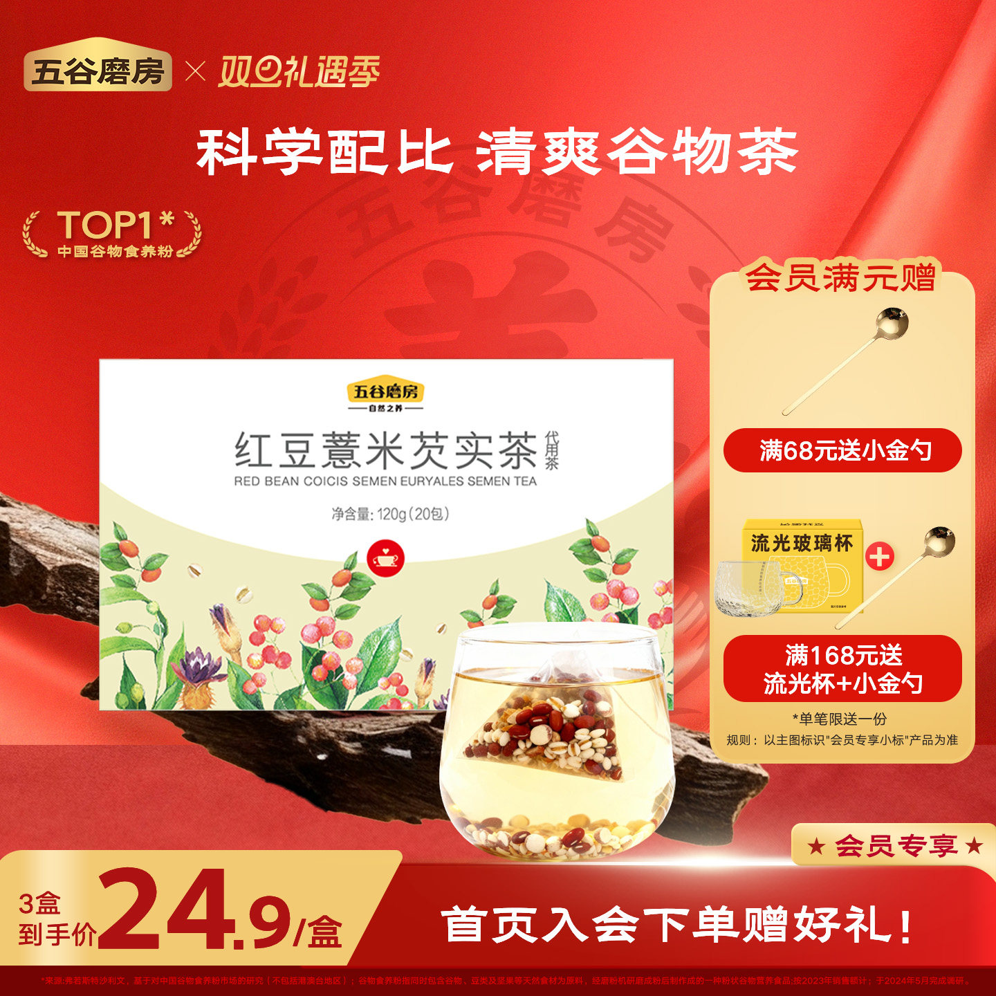 24味赤小豆人参薏米茶去寒湿调理脾胃排除男女体内湿气伏湿养生茶