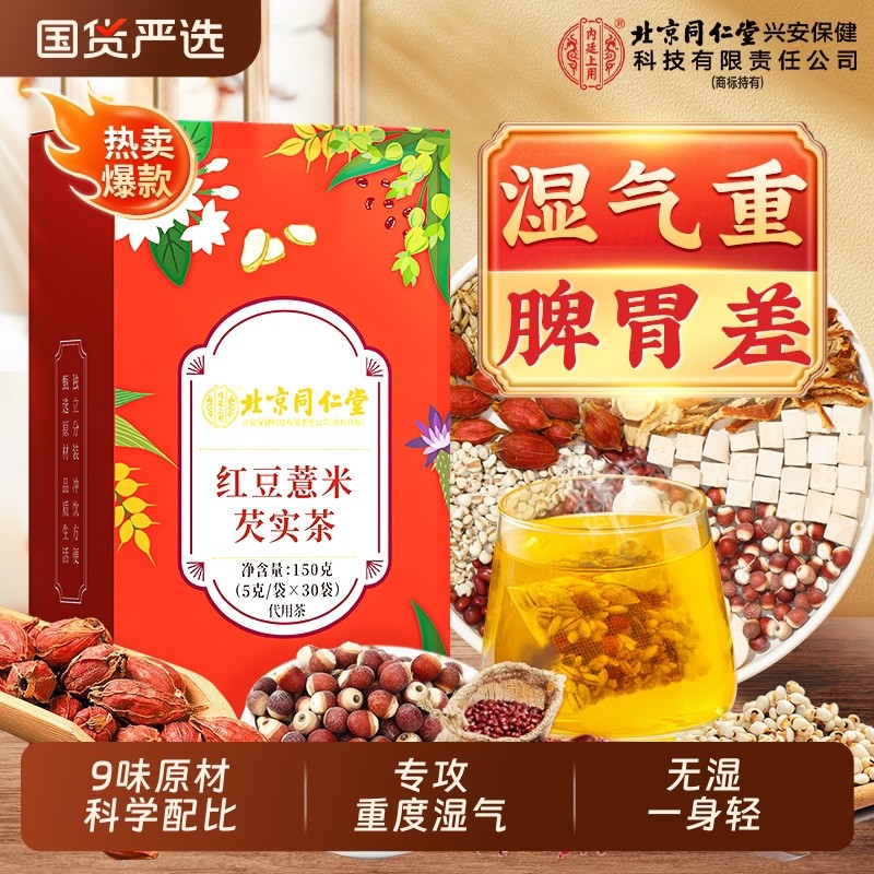 [正宗同仁堂品牌]北京同仁堂红豆薏米茶去祛芡实湿茶养生茶旗舰店