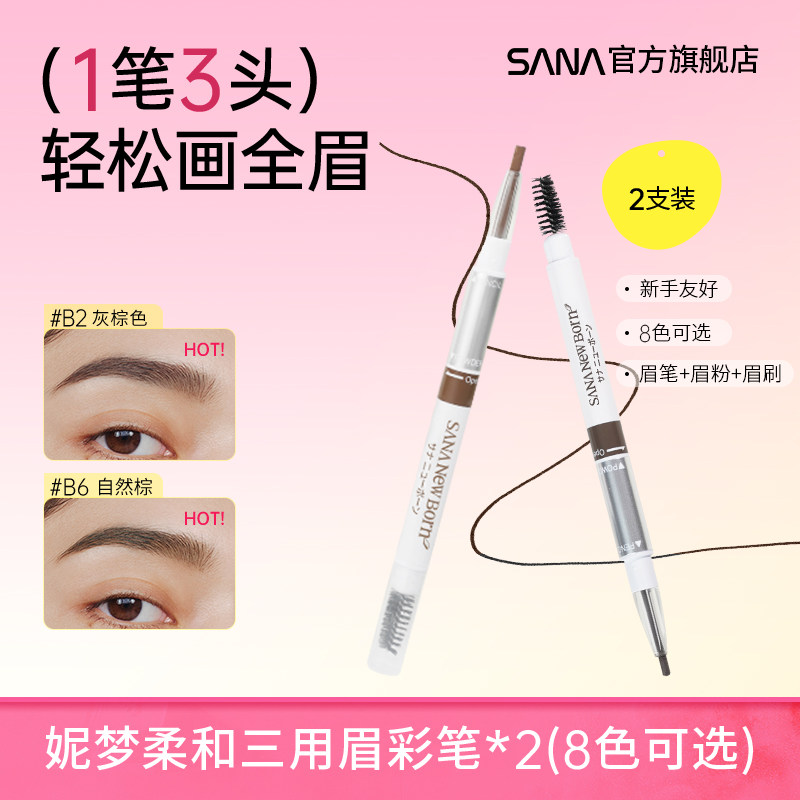 sana莎娜三合一眉笔眉粉眉刷防水持久不脱色不掉色野生眉初学正品