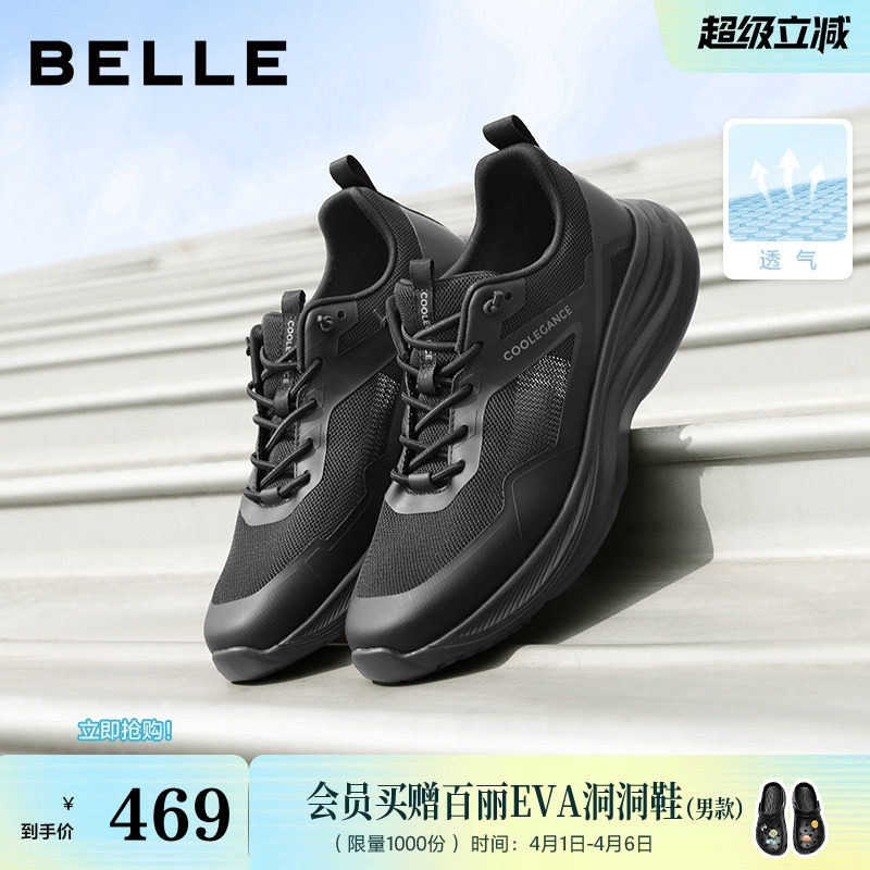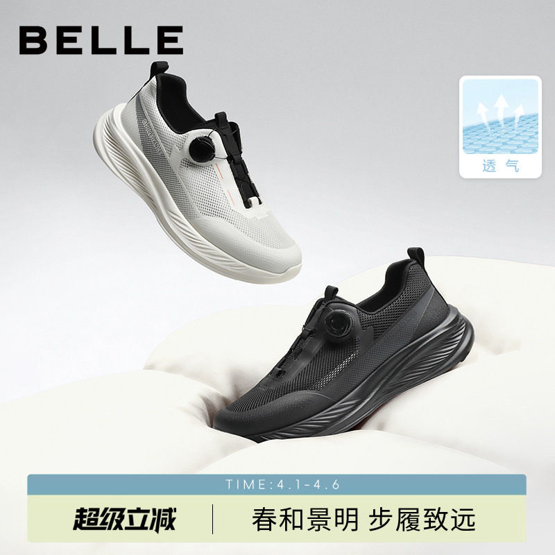百丽男鞋厚底增高轻盈网面透气健步鞋26新男士款休闲运动鞋L1044B