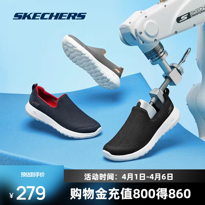 斯凯奇夏季男健步鞋一脚蹬网面透气运动休闲鞋轻便舒适回弹大网孔