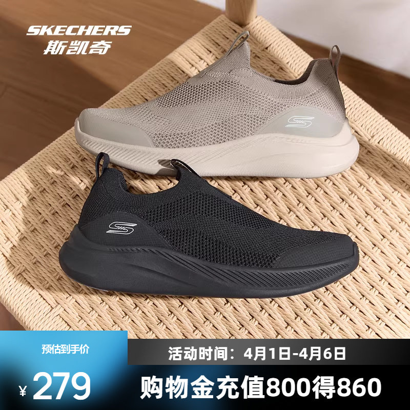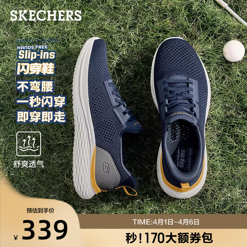 斯凯奇闪穿鞋2026春季新款男一脚蹬运动休闲鞋透气网面健步跑步鞋