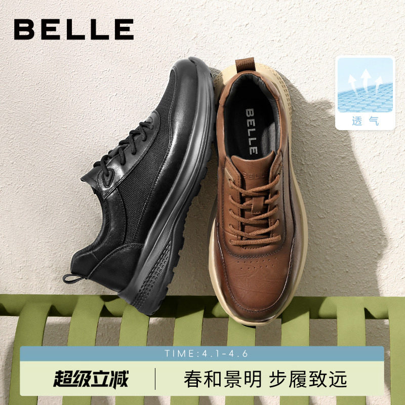 百丽男士休闲真皮健步运动鞋春夏季新款增高网孔透气父亲鞋A1354A