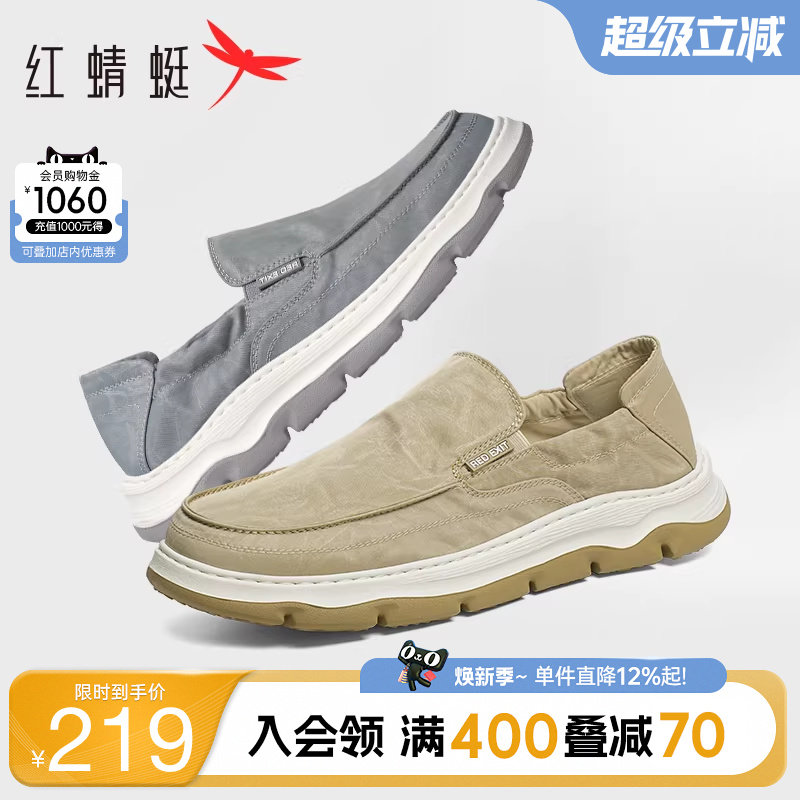 红蜻蜓男鞋春秋新款布鞋男士休闲一脚蹬厚底健步鞋透气软底爸爸鞋