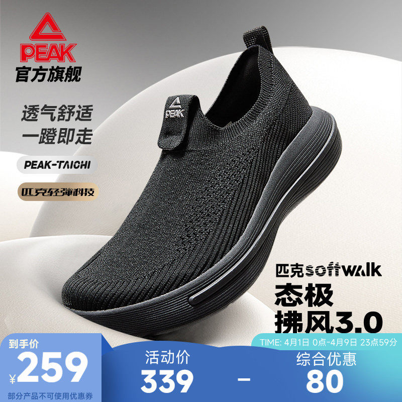 匹克态极拂风走路鞋一脚蹬软弹网面透气健步鞋夏季男女休闲运动鞋