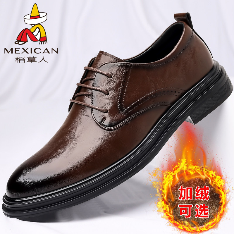 稻草人男鞋冬季加绒保暖男士棉鞋真皮英伦商务正装皮鞋百搭休闲鞋