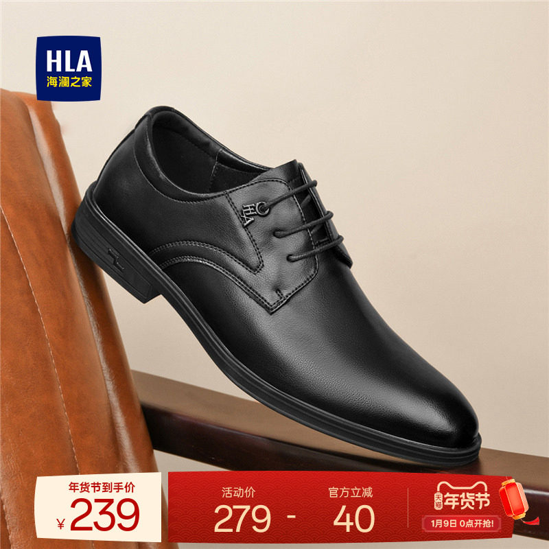 HLA/海澜之家男鞋新款秋冬时尚英伦商务正装皮鞋压纹耐磨百搭男士