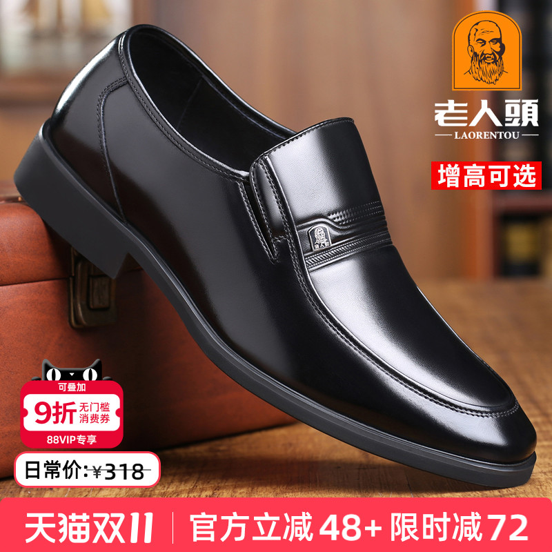 老人头皮鞋男真皮中年英伦商务正装皮鞋内增高6CM透气休闲爸爸鞋