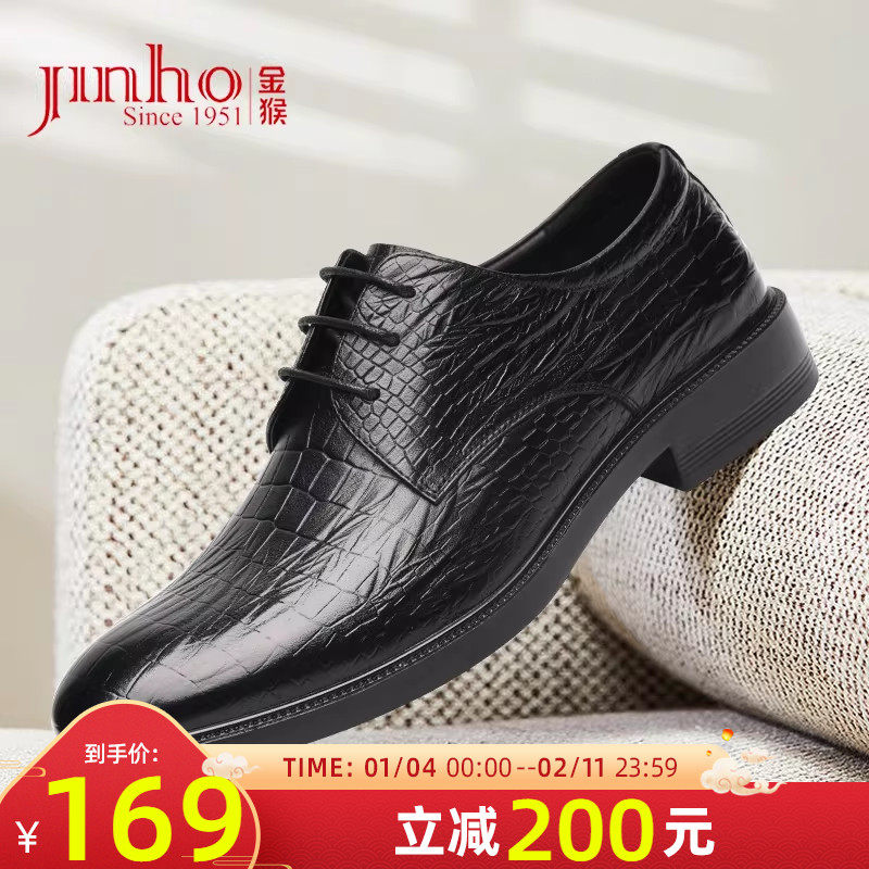 老人头鳄鱼纹男鞋秋冬英伦商务正装皮鞋男真皮透气厚底系带结婚鞋