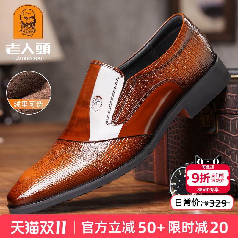 老人头皮鞋男款透气秋季英伦商务正装皮鞋真皮休闲男鞋韩版结婚鞋