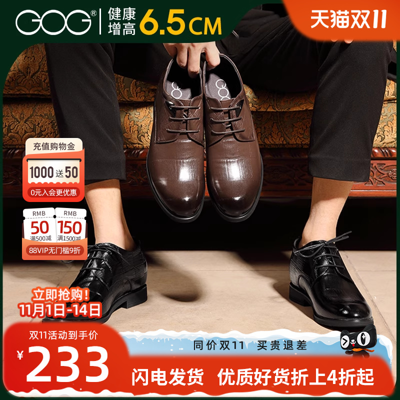 老人头皮鞋男士隐形内增高6CM男鞋真皮英伦商务正装皮鞋尖头婚鞋