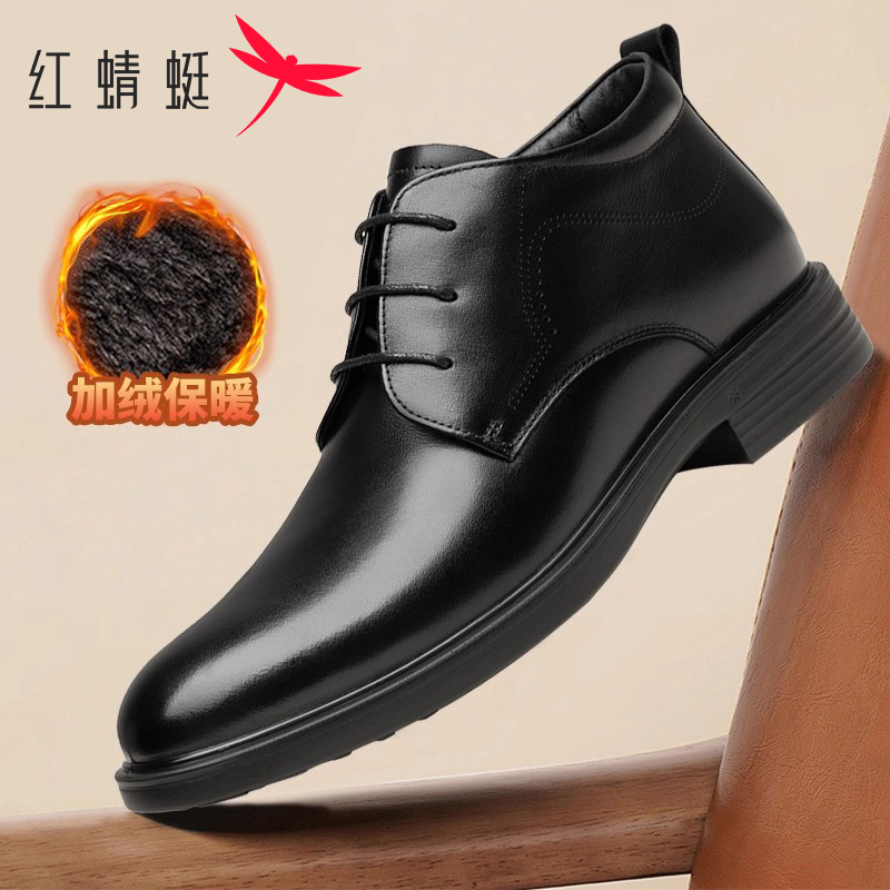 红蜻蜓男棉鞋2025冬季真皮英伦商务正装皮鞋男士加绒保暖高帮棉鞋