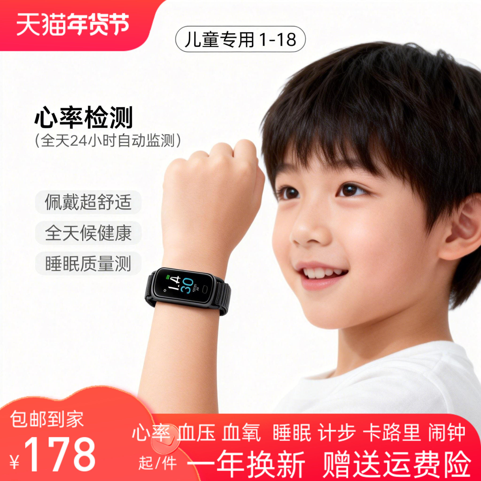 适用安卓苹果儿童智能手环心率睡眠质量分析小学生运动手表计步器