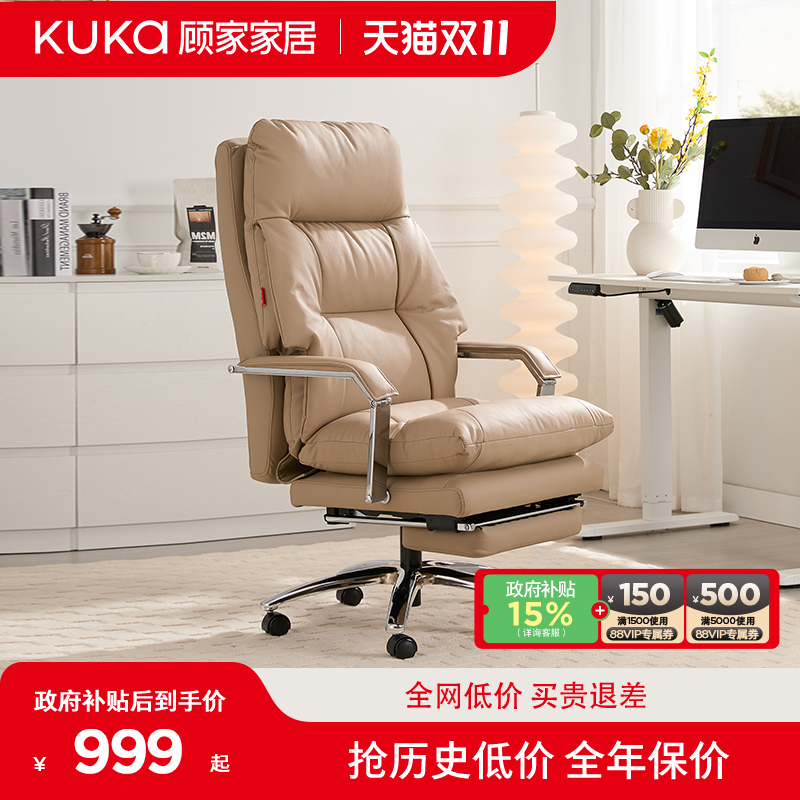 顾家家居电脑椅子靠背椅真皮老板椅办公午睡椅电竞躺椅座椅大班椅