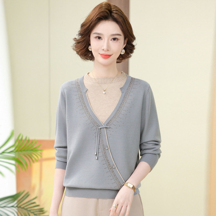 妈妈春装上衣女长袖毛衣打底衫时尚洋气新款中年高贵小衫漂亮套装