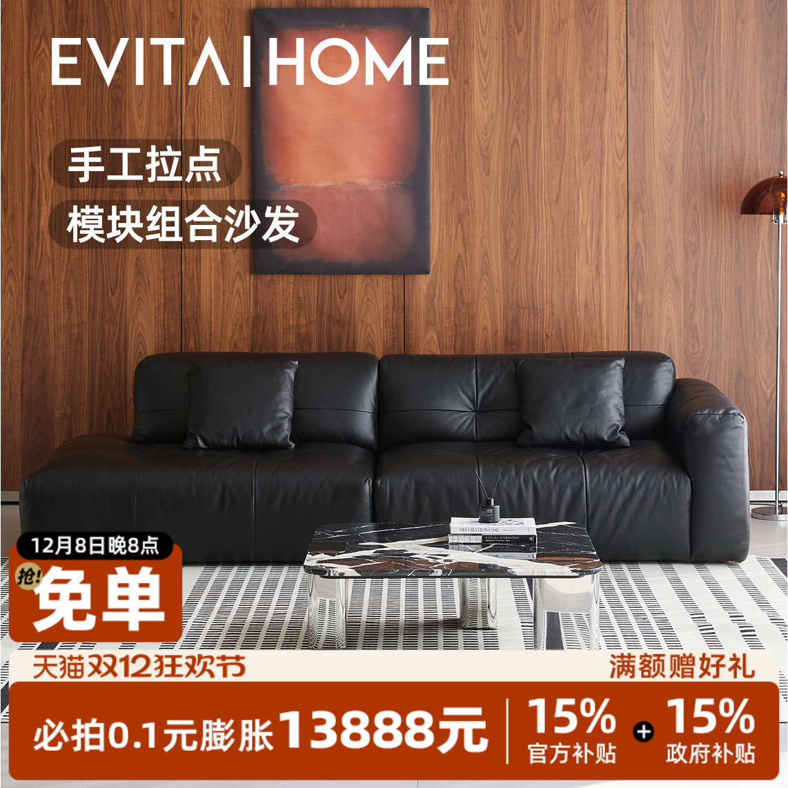 劳伦斯意式极简真皮沙发大户型客厅轻奢黑色头层牛皮直排沙发组合