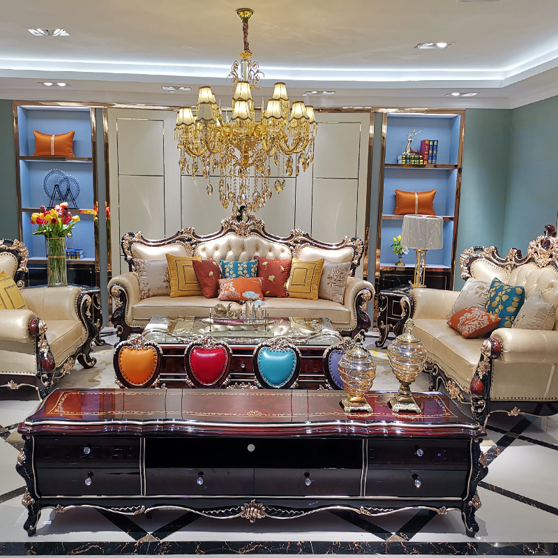 - 欧式真皮沙发客厅组合