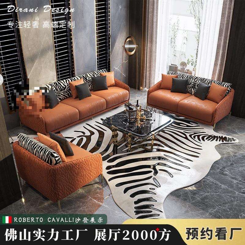 真皮沙发客厅组合个性创意现代别墅供应意式实木真皮沙发轻奢家具