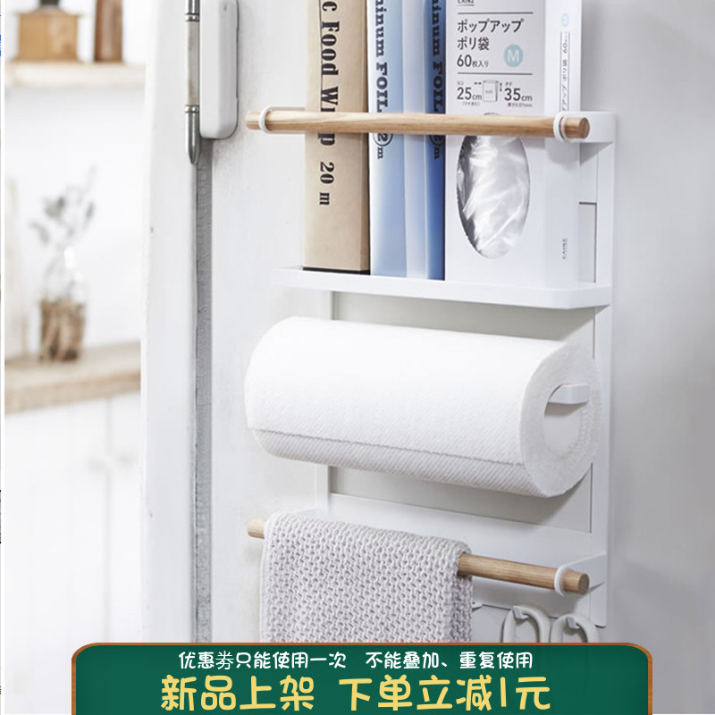 日式简约磁吸冰箱挂架强磁铁卷筒卫生纸巾保鲜袋储物厨房收纳侧壁
