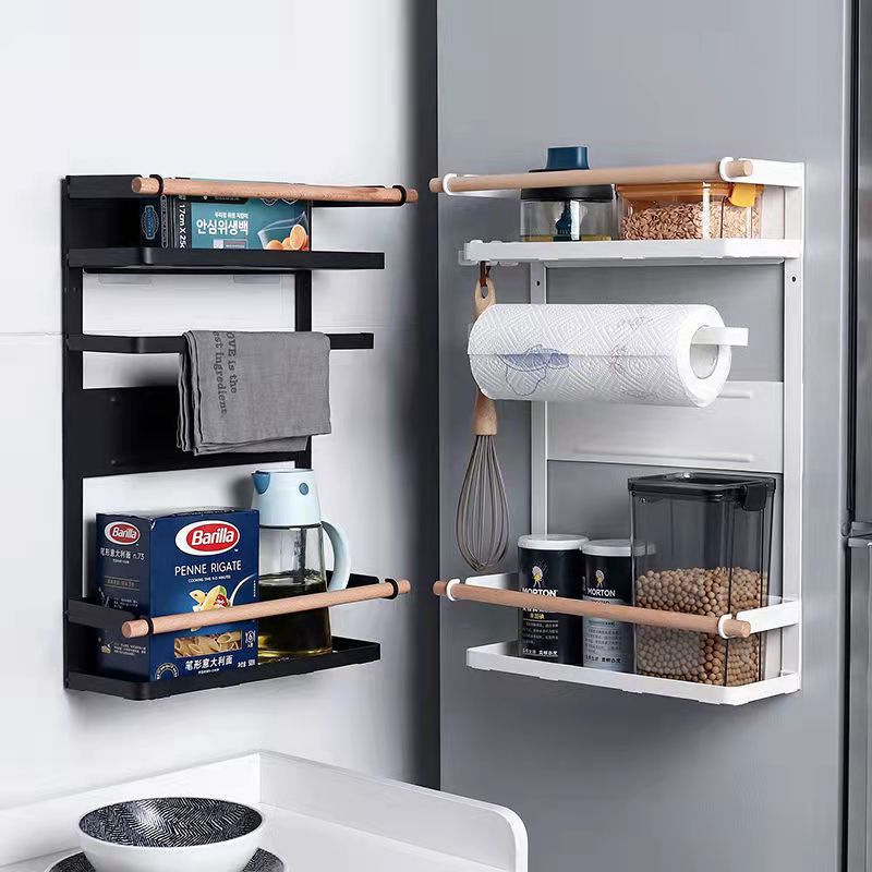 5559.大号冰箱挂架 米木铁质吸磁多层收纳架木杆铁柜吸壁储物架