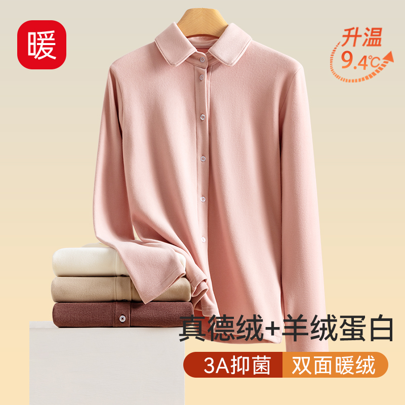 蝶安芬发热保暖白衬衫女加绒加厚通勤职场打底衣长袖内搭白色衬衣