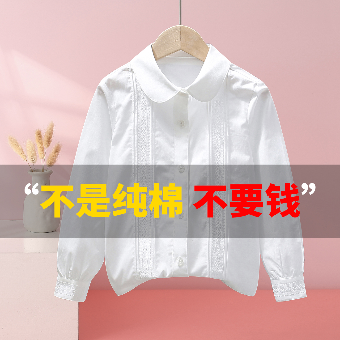 女童长袖白色衬衫加绒加厚纯中小学生衬衣棉男童免烫儿童演出校服