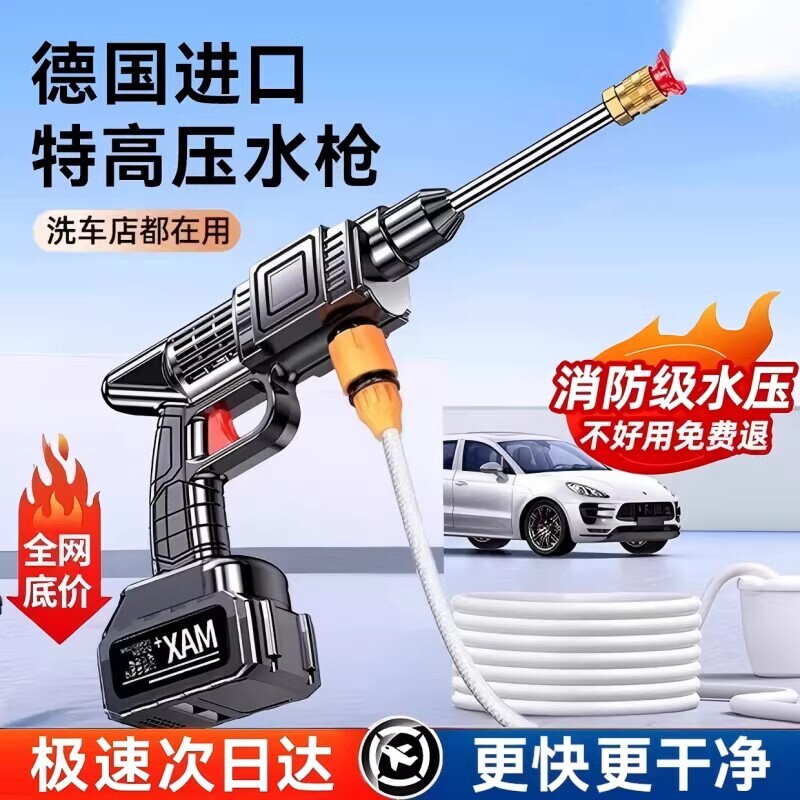 德国高压洗车水枪无线大功率家用锂电池强力增压清洗机神器喷水枪