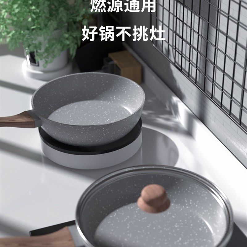 麦石锅不粘锅炒锅麦饭石家用平底锅小电磁炉专用炒菜锅燃气灶适用