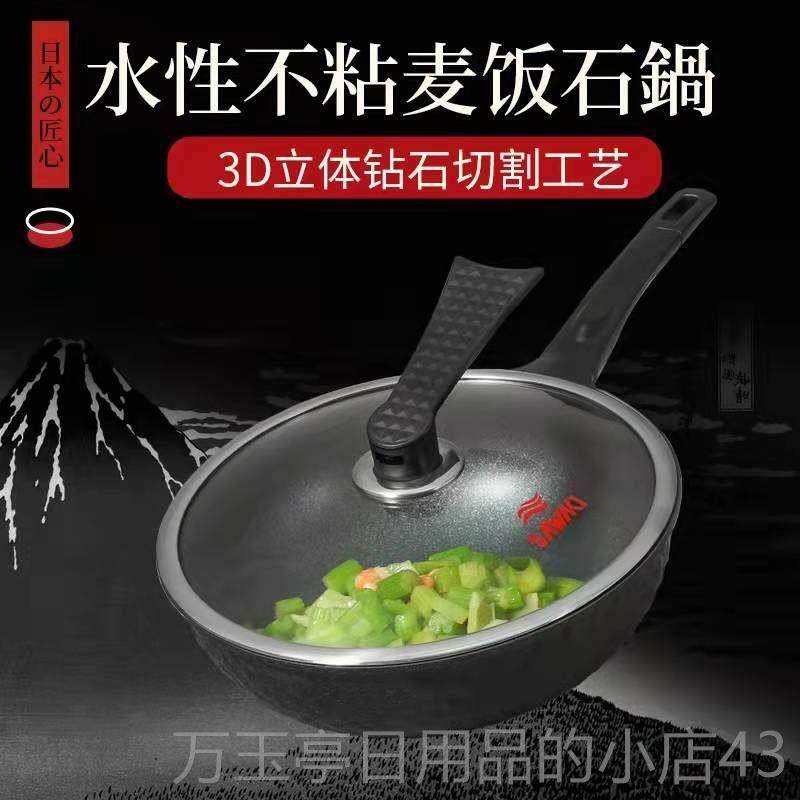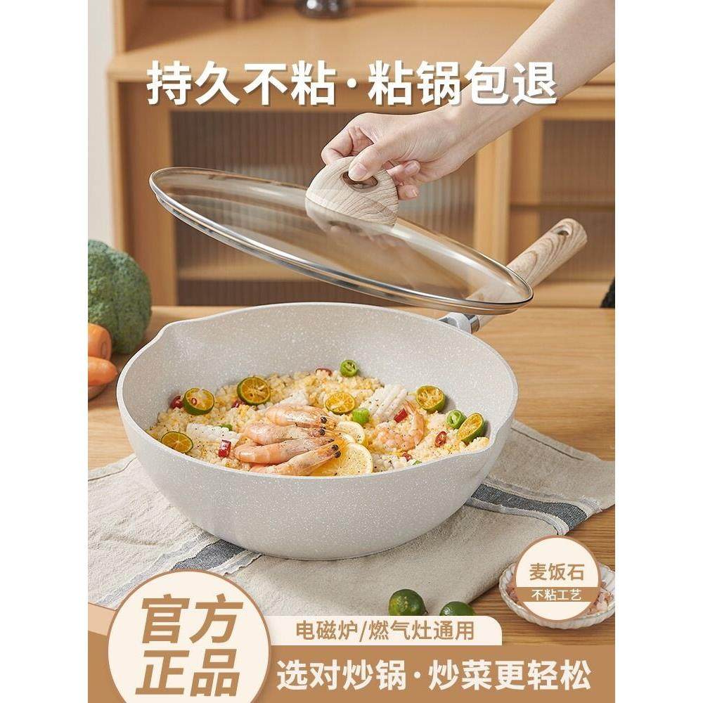 微压麦饭石锅不粘锅炒锅家用炒菜锅正品燃气灶适用平底不沾麦石锅