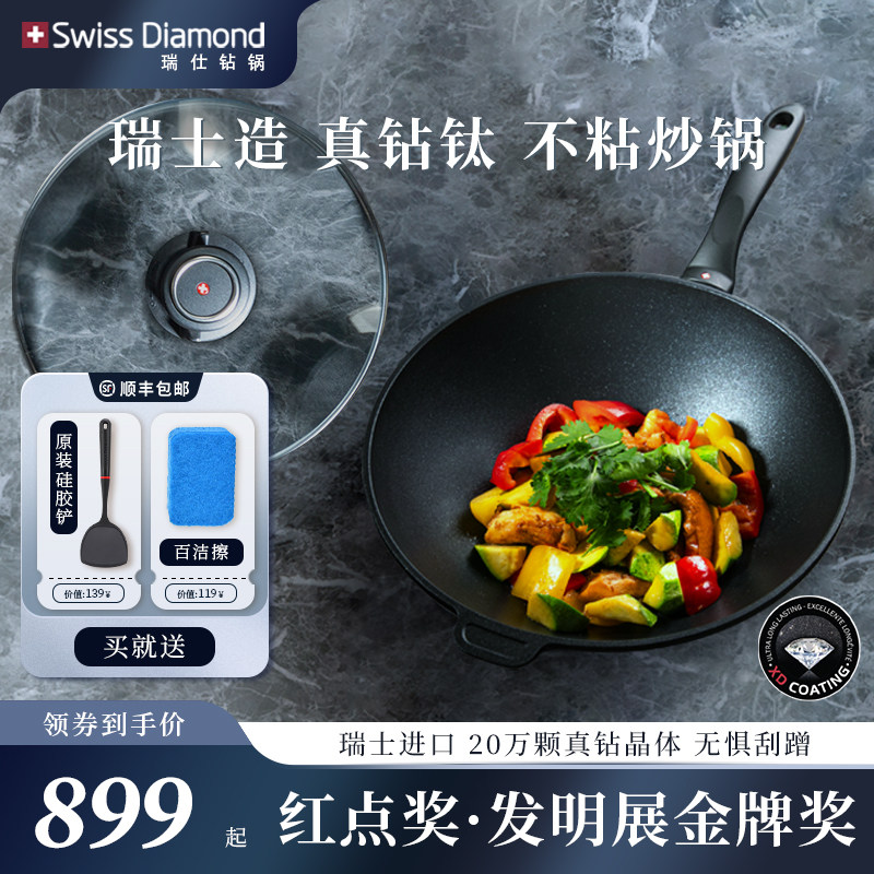 瑞士进口Swissdiamond钻石锅炒锅不粘锅家用炒菜电磁炉燃气通用锅