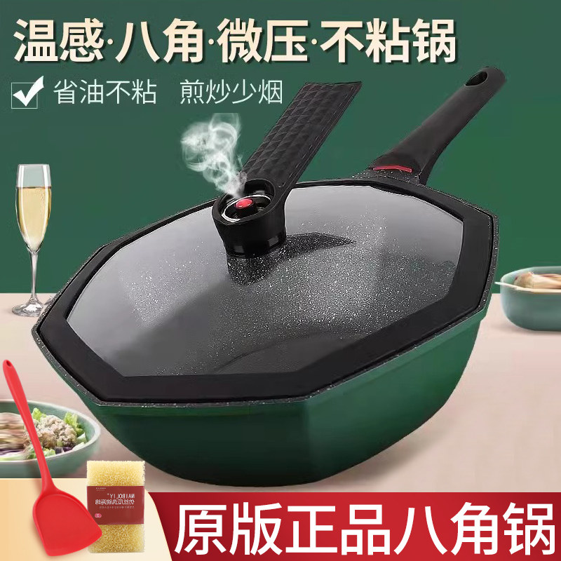 八角锅麦饭石锅不粘锅炒锅家用微压锅炒菜锅不沾燃气灶专用电磁炉