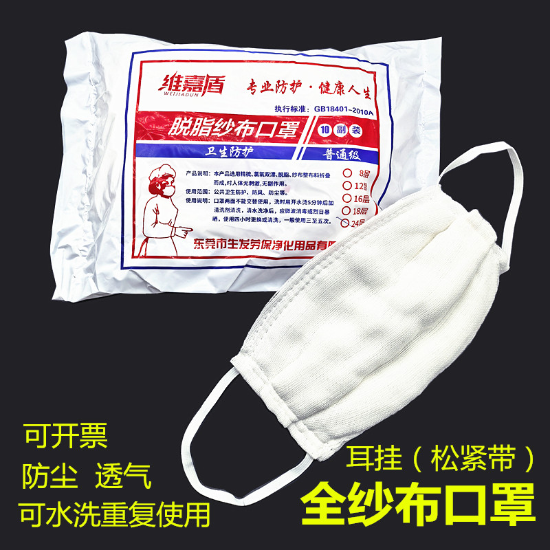 职安康纱布口罩防尘防工业粉尘12层24层打磨棉纱可清洗头戴式透气