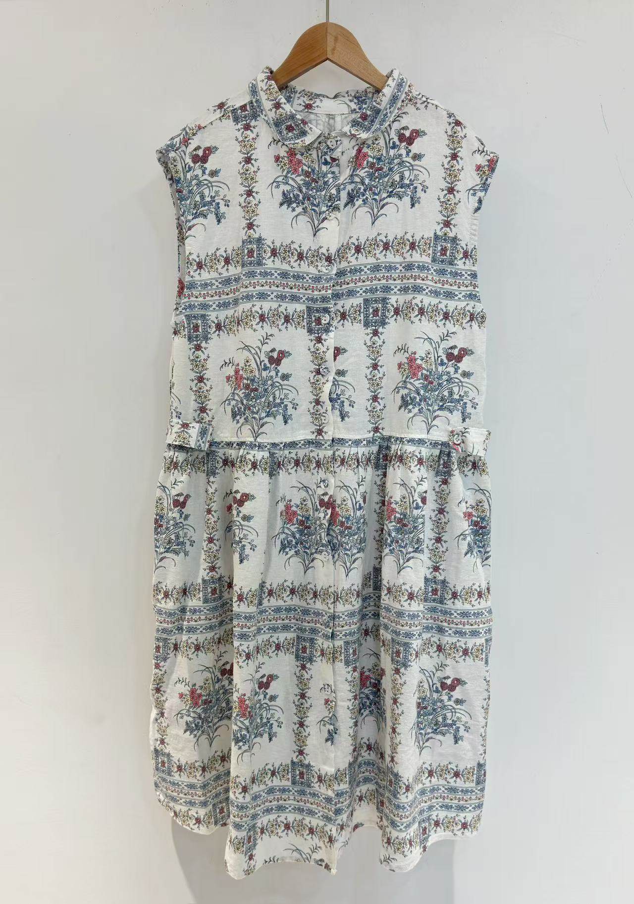 日系小清新设计感复古印花纯棉夏季新款减龄翻领无袖洋洋连衣裙女