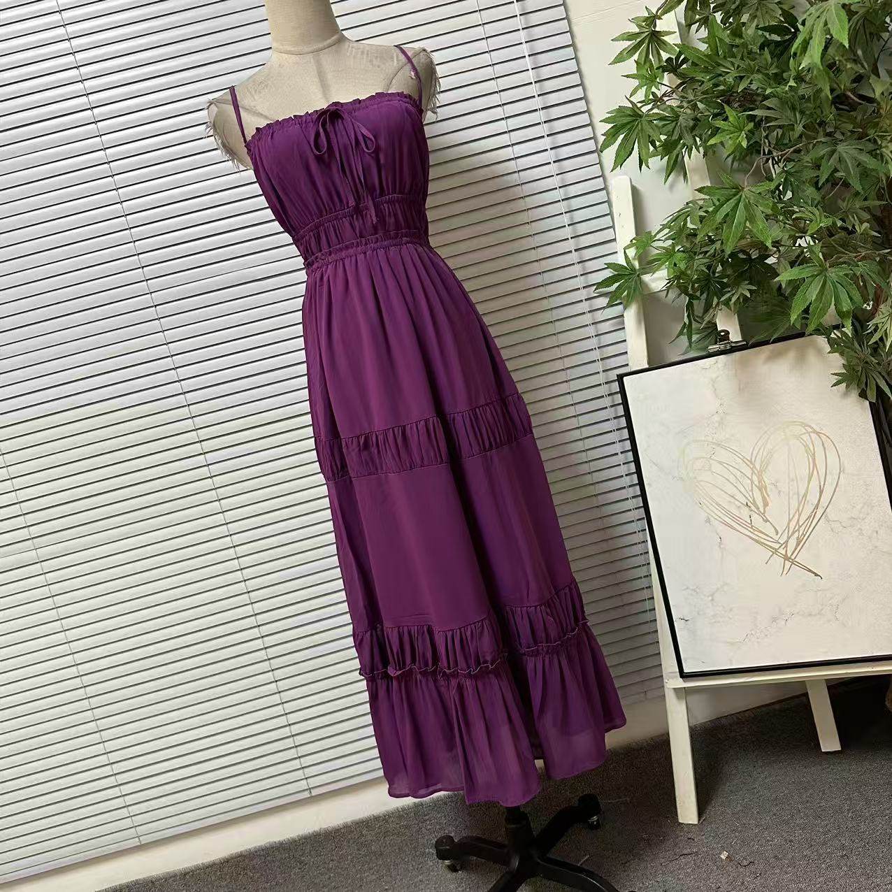 - 吊带格子裙子连衣裙