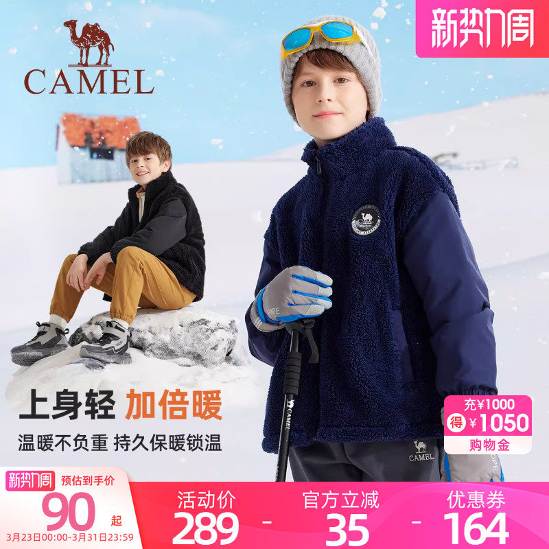 骆驼儿童抓绒衣秋冬季2025新款加绒加厚保暖男童女童摇粒绒外套